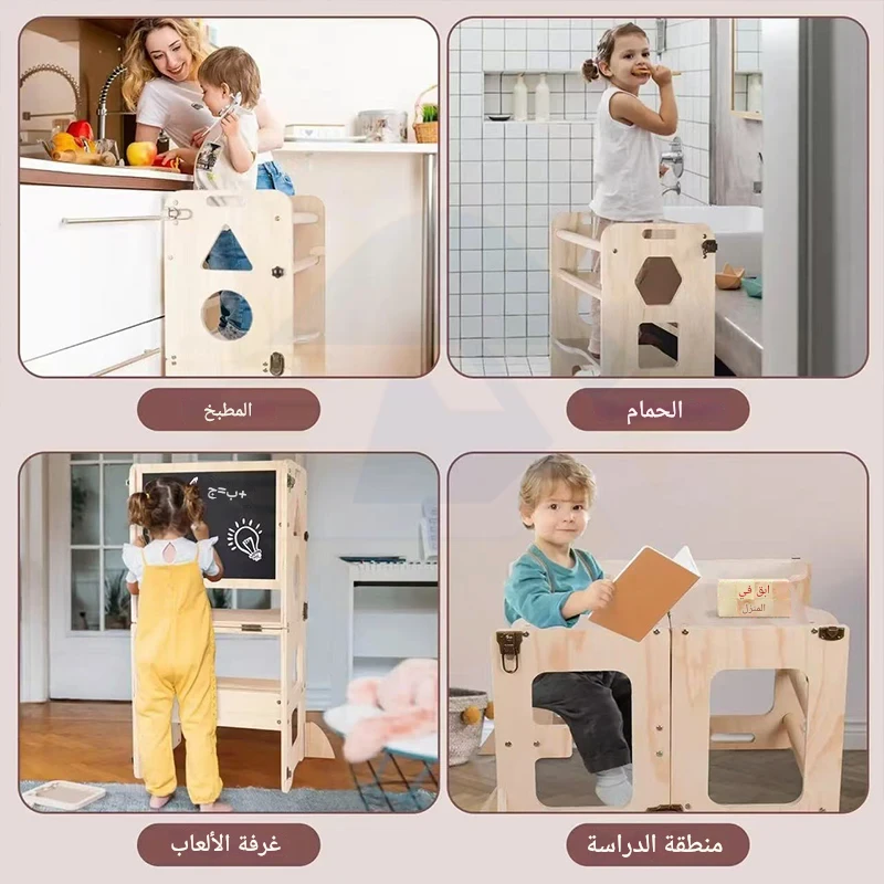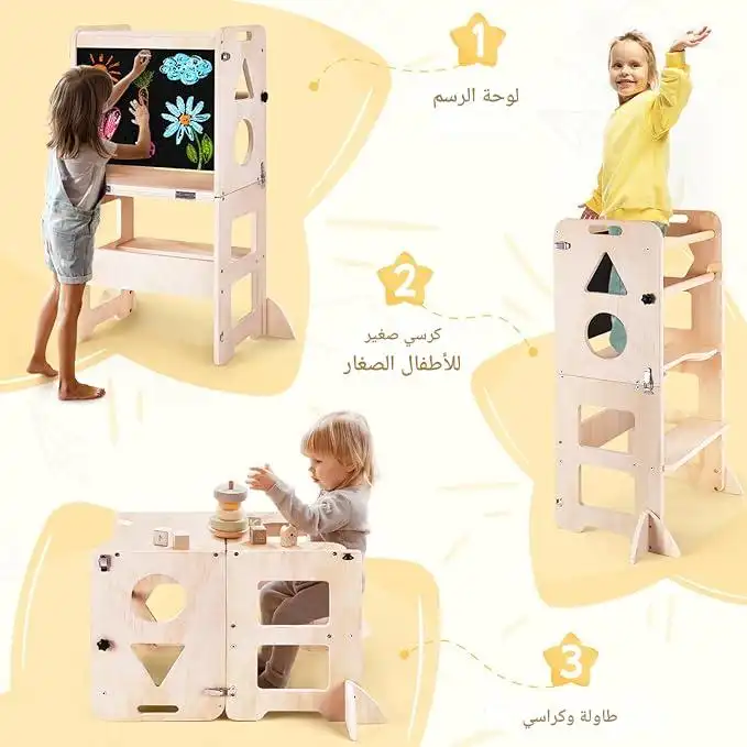 | برج تعليمي قابل للطي مع سبورة، وكرسي مطبخ خشبي مساعد للأطفال | 1 7900 د.ج |